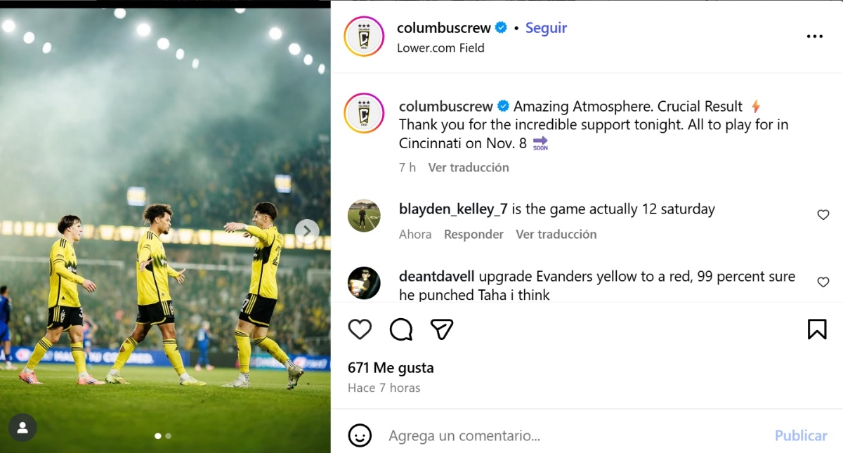 Rossi, pieza clave del equipo, declaró tras el partido que el grupo “nunca dejó de creer” y que el objetivo está claro: “luchar por otro título para Columbus”.