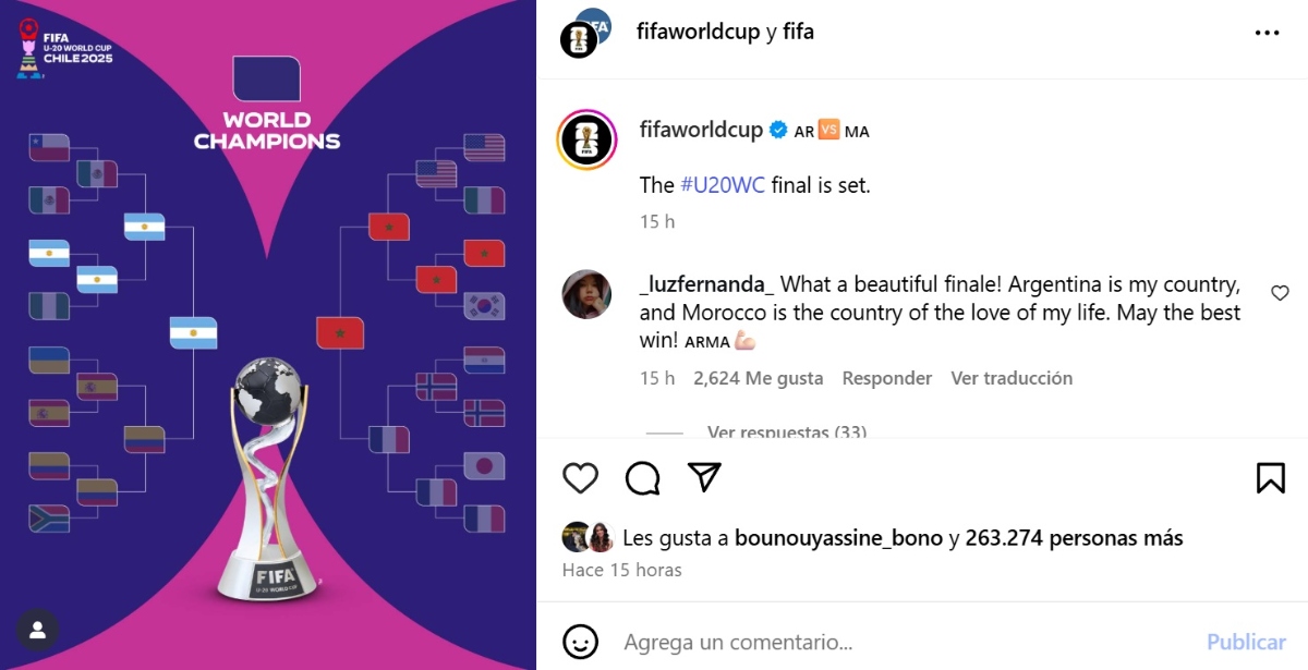 The U-20 World Cup 2025 enters its final chapter with a clash that promises intense emotions: Argentina and Morocco will dispute the world title next Sunday, October 19 at the Julio Martínez Prádanos National Stadium in Santiago de Chile.