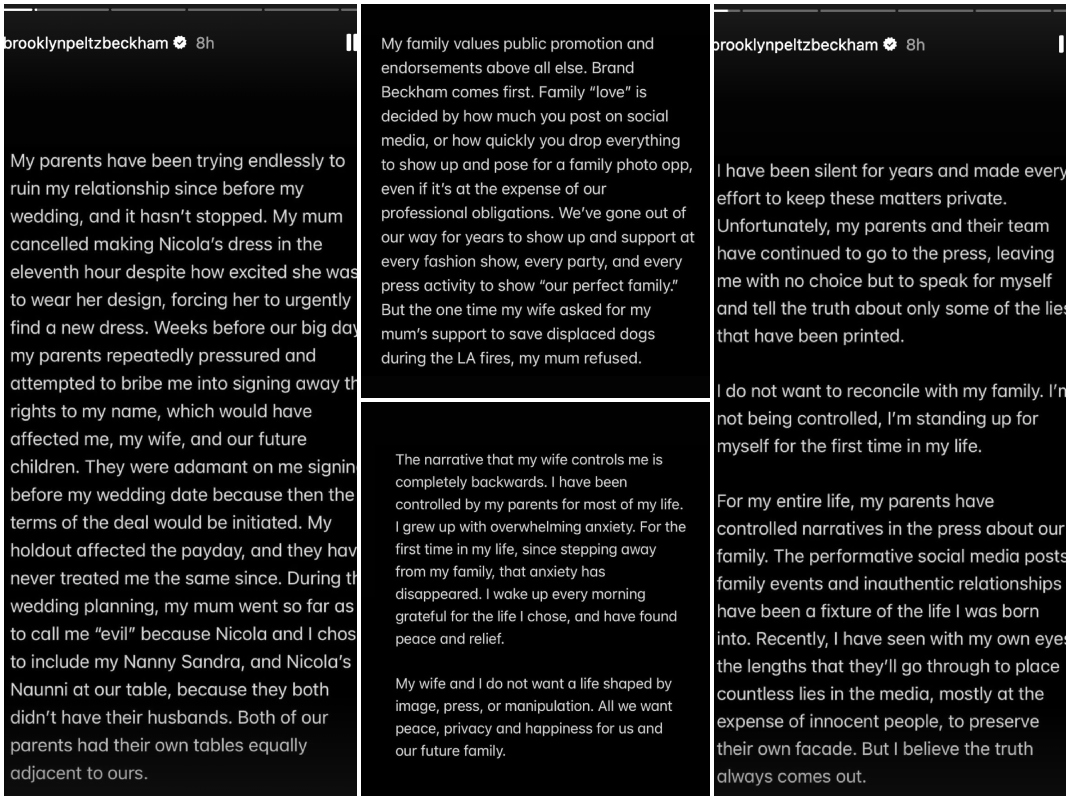 The Beckham family has for years built an image of unity and success, so Brooklyn’s statement represents a significant blow to that carefully managed narrative.