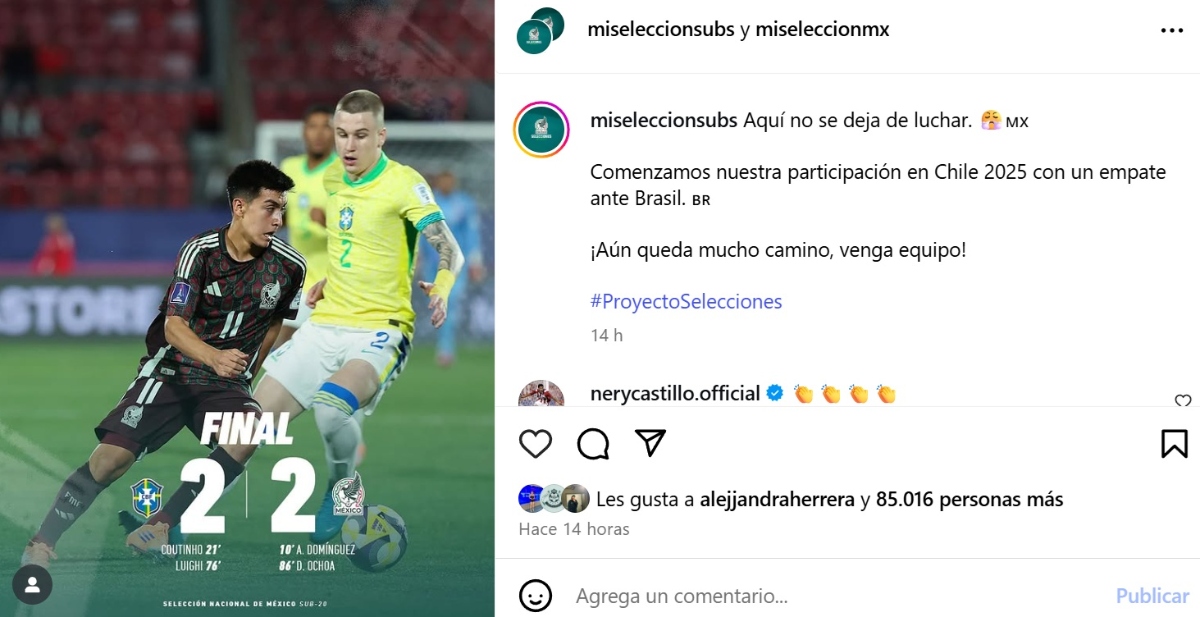 Mexico’s U-20 National Team kicked off its participation in the U-20 World Cup Chile 2025 with a 2-2 draw against Brazil, in a match that remained exciting until the final minutes.