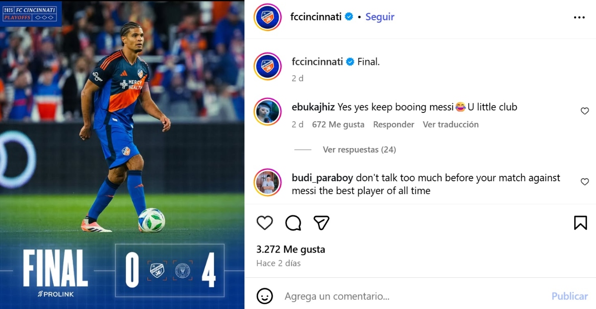 Inter Miami’s 4-0 thrashing of FC Cincinnati in the MLS playoffs left more than just a big score: it sparked controversy over the behavior of some local players at the end of the match. Former Canadian soccer player and analyst Kaylyn Kyle called it “disgraceful” that several Cincinnati players approached Lionel Messi to ask him to exchange jerseys minutes after being eliminated at home.