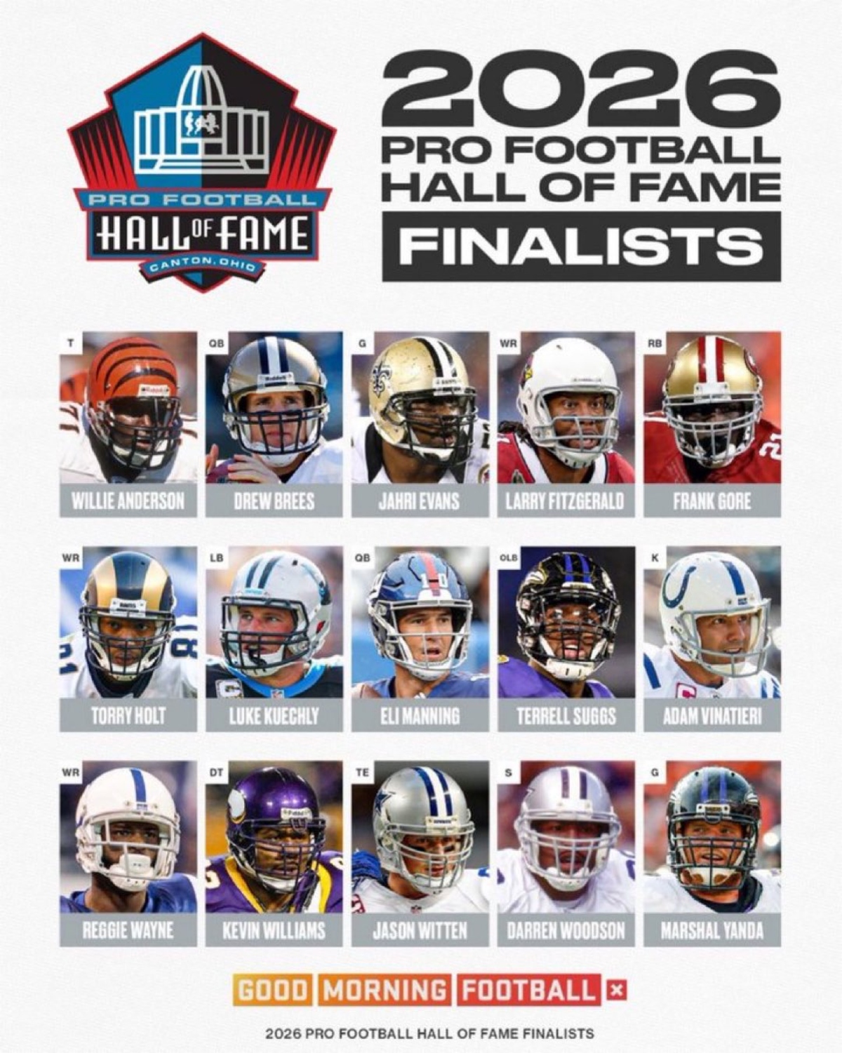 Drew Brees, Eli Manning y Adam Vinatieri fueron anunciados este martes entre los 15 finalistas que aspiran a formar parte del Salón de la Fama del Fútbol Americano Profesional en su clase 2026.