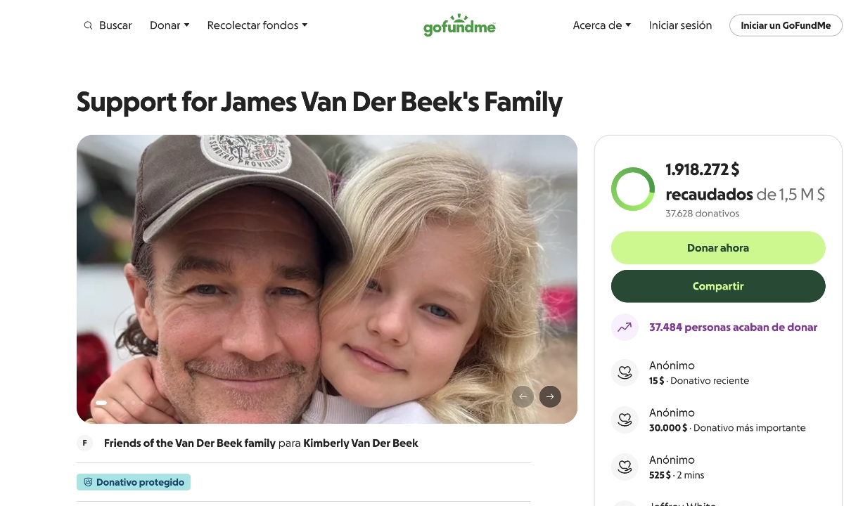 Horas después de confirmarse el deceso, se habilitó una campaña en la plataforma GoFundMe con un objetivo claro: evitar que la viuda de James, Kimberly Van Der Beek, y sus seis hijos menores de edad, caigan en una insolvencia financiera.