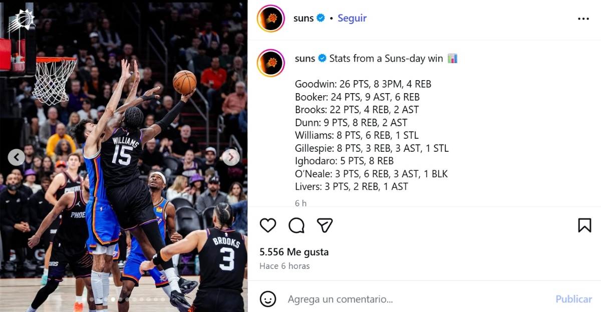 Este domingo los de Phoenix se vengaron con un gran triunfo frente a los campeones de la NBA (108-105).