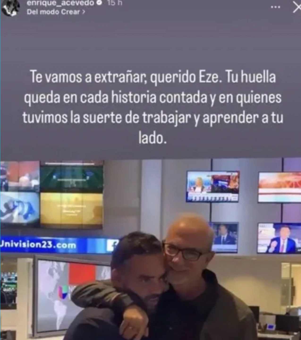 El periodista Enrique Acevedo, también rostro emblemático de Univision Noticias, se sumó a los homenajes con un mensaje de despedida en el que destacó la huella profesional de Ezequiel Pérez.