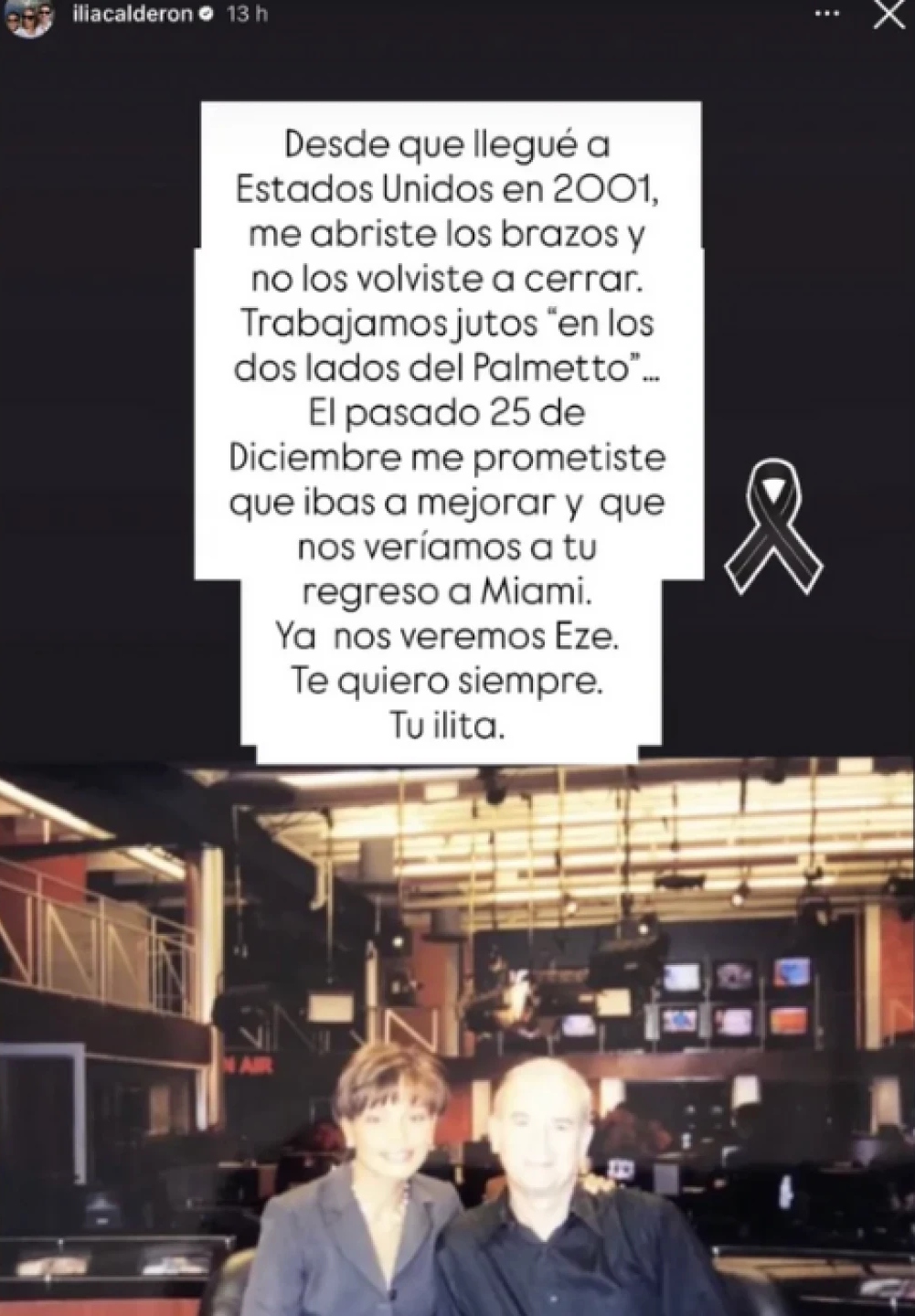 “Desde que llegué a Estados Unidos en 2001 me abriste los brazos y no los volviste a cerrar. Trabajamos juntos en Los dos lados del Palmetto. El pasado 25 de diciembre me prometiste que ibas a mejorar y nos veríamos a tu regreso a Miami”, escribió Ilia Calderón, palabras que conmovieron a colegas y seguidores.