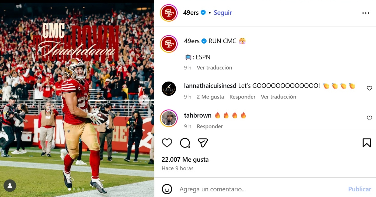 A pesar de las tres intercepciones Purdy sumó un envío de anotación y se apoyó en el aporte terrestre de Christian McCaffrey, quien logró un touchdown, para consumar la victoria.