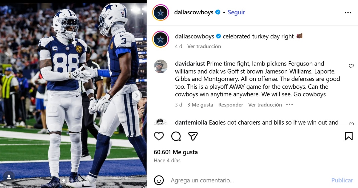 La semana 14 de la NFL arrancará este jueves con la visita de los Dallas Cowboys, noveno en la Conferencia Nacional (NFC) con 6-5-1, a los Detroit Lions, octavo con 7-5.
