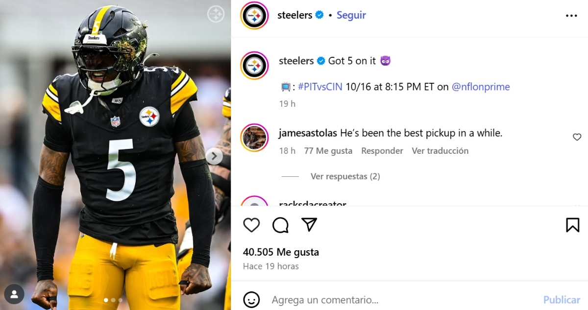 Pittsburgh marcha primero en el Norte de la AFC de la NFL con cuatro triunfos y una derrota, adelante de los favoritos Baltimore Ravens y Cincinnati Bengals.