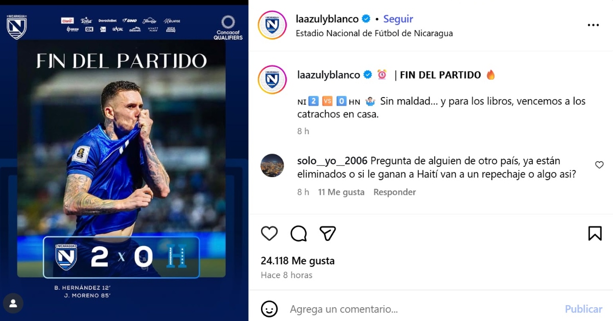 La eliminada selección de Nicaragua sorprendió este jueves a la de Honduras al lograr un triunfo por 2-0, con lo que le impidió clasificarse anticipadamente al Mundial de 2026 en un partido jugado en Managua por la penúltima fecha de las eliminatorias de la Concacaf.