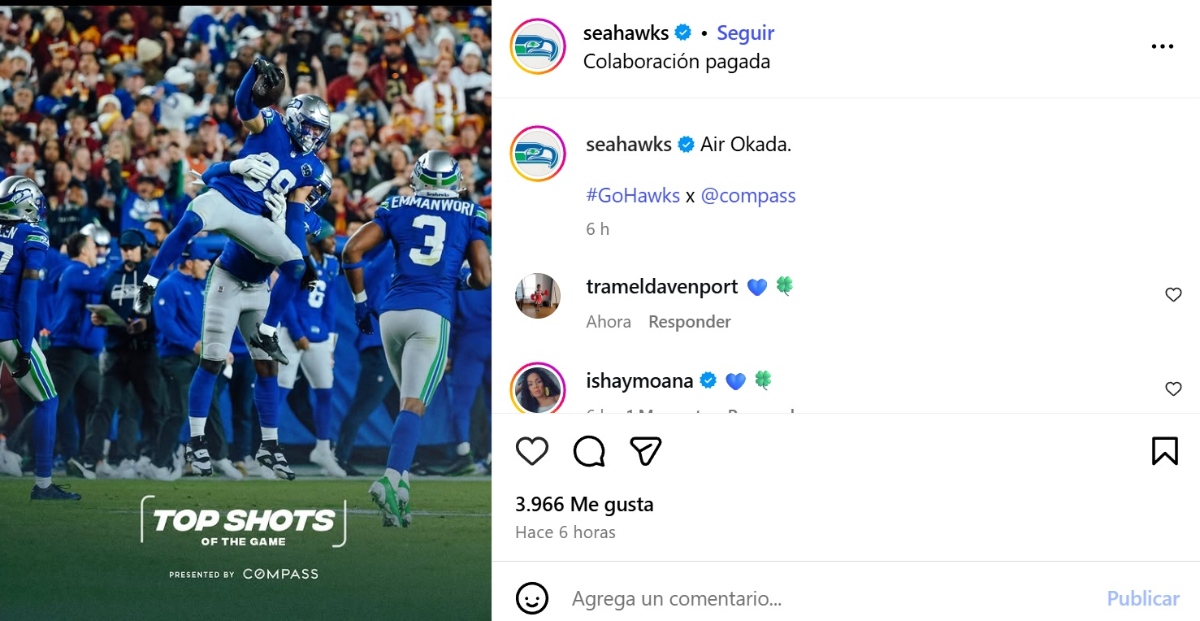 Los Seahawks alargaron 0-21 con un nuevo pase de touchdown que atrapó Elijah Arroyo, receptor de origen mexicano.