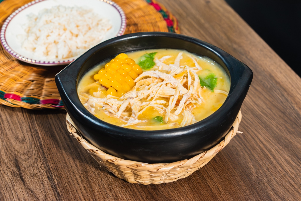Originario de Bogotá, el ajiaco combina papas criollas, pastusas y sabaneras con pollo desmenuzado y la tradicional guasca.